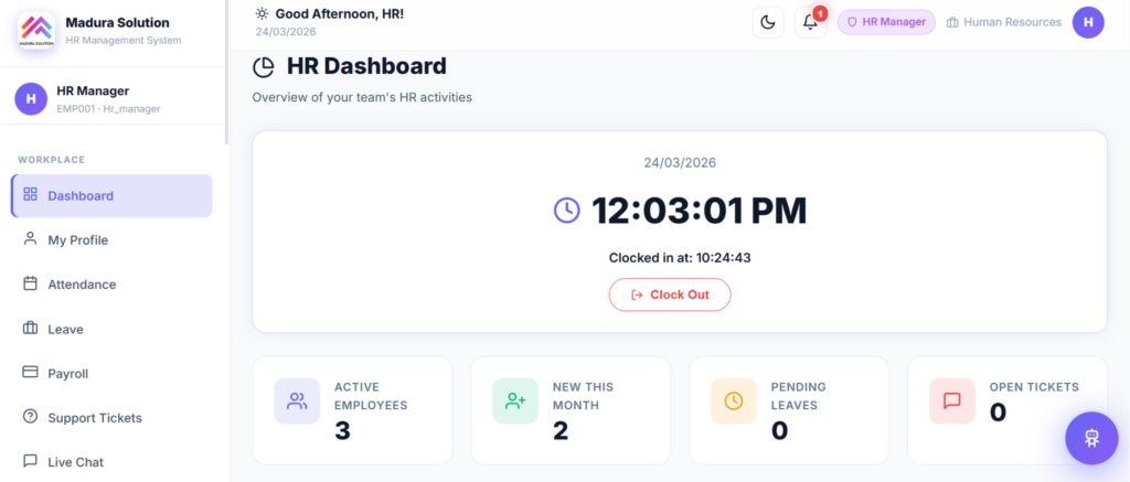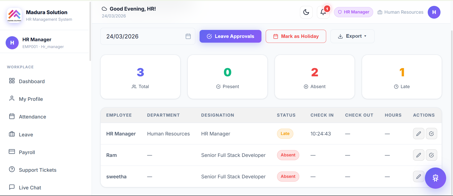 Madura HRMS is an all-in-one workforce management solution designed to manage employees, attendance, payroll and HR operations efficiently.